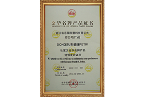 金華名牌產品證書